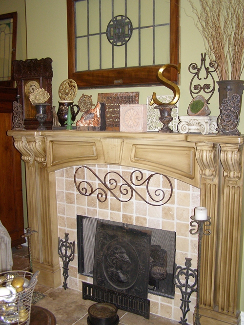 The second area is the great room mantle. As you can see, The Queen adores architectural pieces.